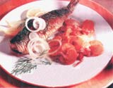 Smash the garlic and fry it in the oil. When the garlic gets cold, lard the fish with it, then put salt and add the laurel leaf, black pepper grains and oil inside it. Wrap the trout up with parchment paper or folio and bake at 200°.