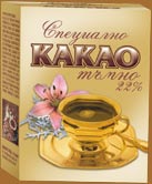 Натурално какао на прах с масленост 10-12% Предлага се в опаковки от 45g, 500g, 1kg и 25kg Описанието на продукта е на седем езика:български, английски, руски, сръбски, македонски, албански и турски